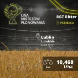 W dniu 16 sierpnia 2023 zebrany plon wyniósł 10,46 t/ha pszenicy ozimej odmiany RGT RITTER. Dowiedz się więcej o nawozach i środkach ochrony roślin PROCAM, które pozwoliły na osiągnięcie wyjątkowych wyników.